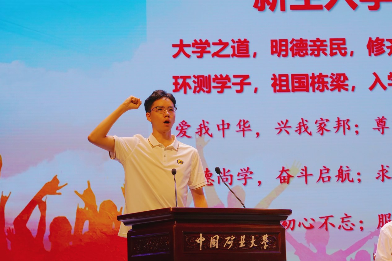 全体新生紧握右拳,激扬宣誓:“大学之道,明德亲民,修齐治平,止于至善。环测学子,祖国栋梁,入学之始,庄严宣誓……”铿锵的誓言激荡在会场上空,展现了环测学子意气风发、奋勇争先的精神面貌。开学典礼在悠扬的校歌声中落下帷幕。