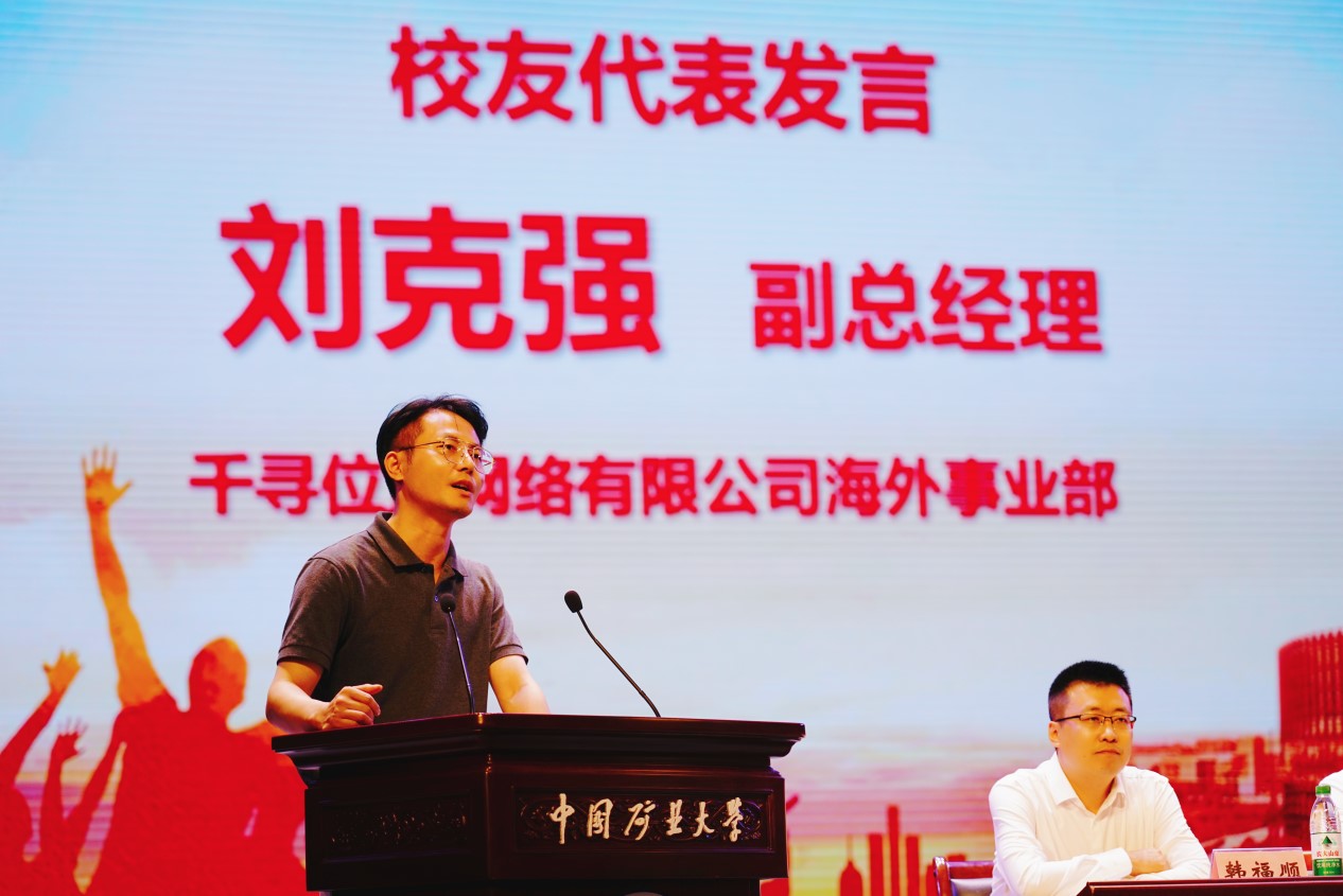 教师代表、环境科学专业负责人、矿山生态修复教育部研究中心副主任张明青教授发言,希望同学们脚踏实地、不断学习、多去实践,在矿大这片沃土上学有所获、学有所成。千寻位置网络有限公司海外事业部副总经理刘克强作为校友代表发言,他结合自己在矿大本科、硕士、博士10年的学习工作经历,勉励同学在直播露点