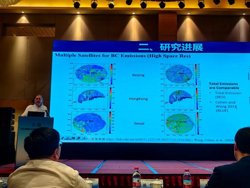 Cohen Jason与秦凯教授共同领导的碳排放与空气质量遥感团队致力于利用卫星遥感技术支撑能源行业降碳减污,初步形成了“遥感反演-排放量化-影响归因”的方法技术体系。此次会议上,Cohen Jason教授详细介绍了团队利用多种光学观测方法在黑碳颗粒物排放、归因及辐射强迫方面取得的创新成果,为相关领域的进一步探索提供了新的思路。