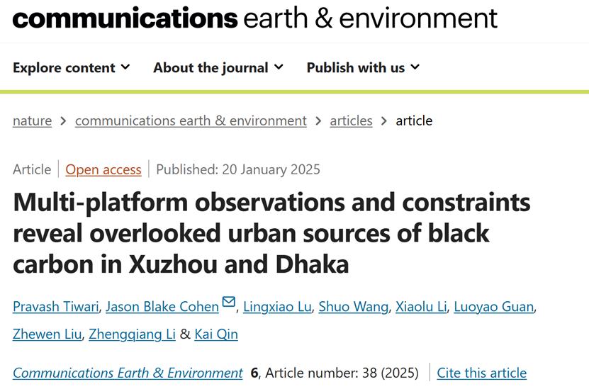 论文题目为“Multi-platform observations and constraints reveal overlooked urban sources of black carbon in Xuzhou and Dhaka”,直播露点