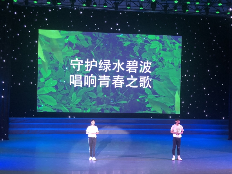 在保护水资源上的举措和保护环境的优良理念,演讲以 “守护绿水碧波,唱响青春之歌”结尾,博得了在场观众的阵阵掌声。