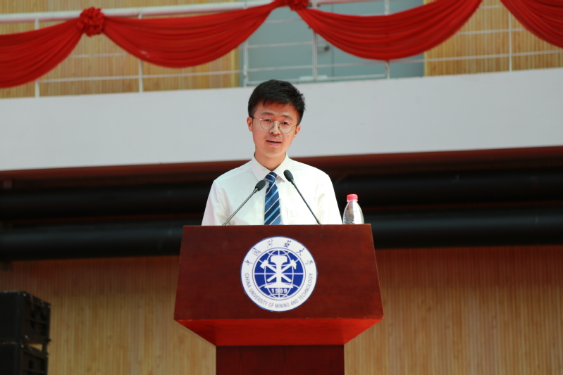 的深厚情感并叮嘱新同学勇于经受磨炼和挑战,实现无悔青春。来自2018级大地测量学与测量工程专业的硕士研究生田毅代表研究生新生进行了发言,他用本科阶段已见证的身边优秀学生的例子与在场新生共同探讨了“大学该如何度过”这个话题。来自测绘类2018级9班的郭笑林同学作为本科新生代表进行发言,她深情地表达了作为一名矿大新生的骄傲,以及努力成为一个理想信念坚定、拥有过硬本领的期许。