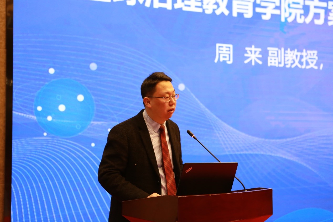 在本科生学术导师制启动仪式上,周来副院长介绍了国际组织人才培养创新实践——“全球治理教育直播露点