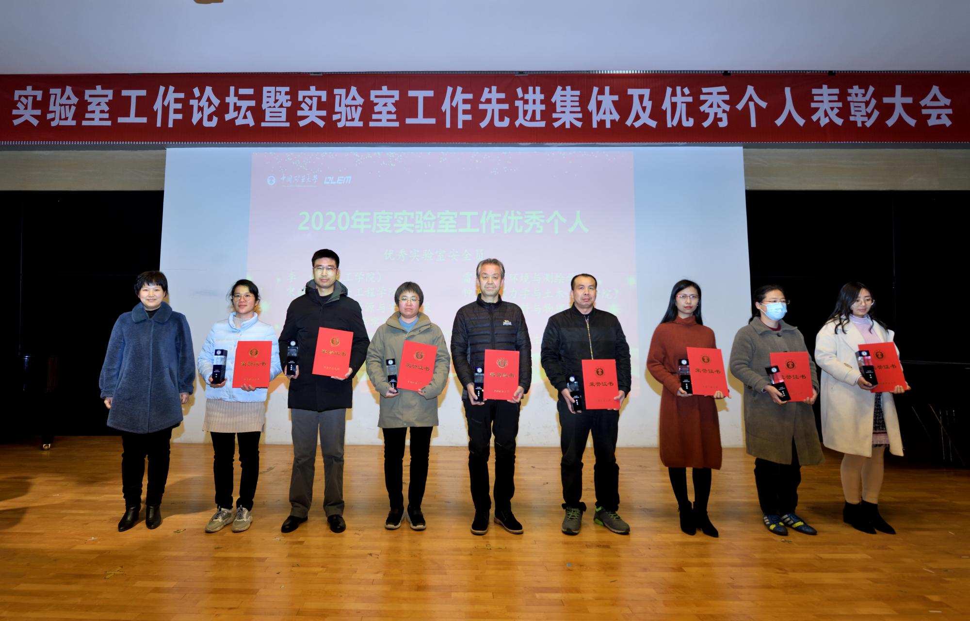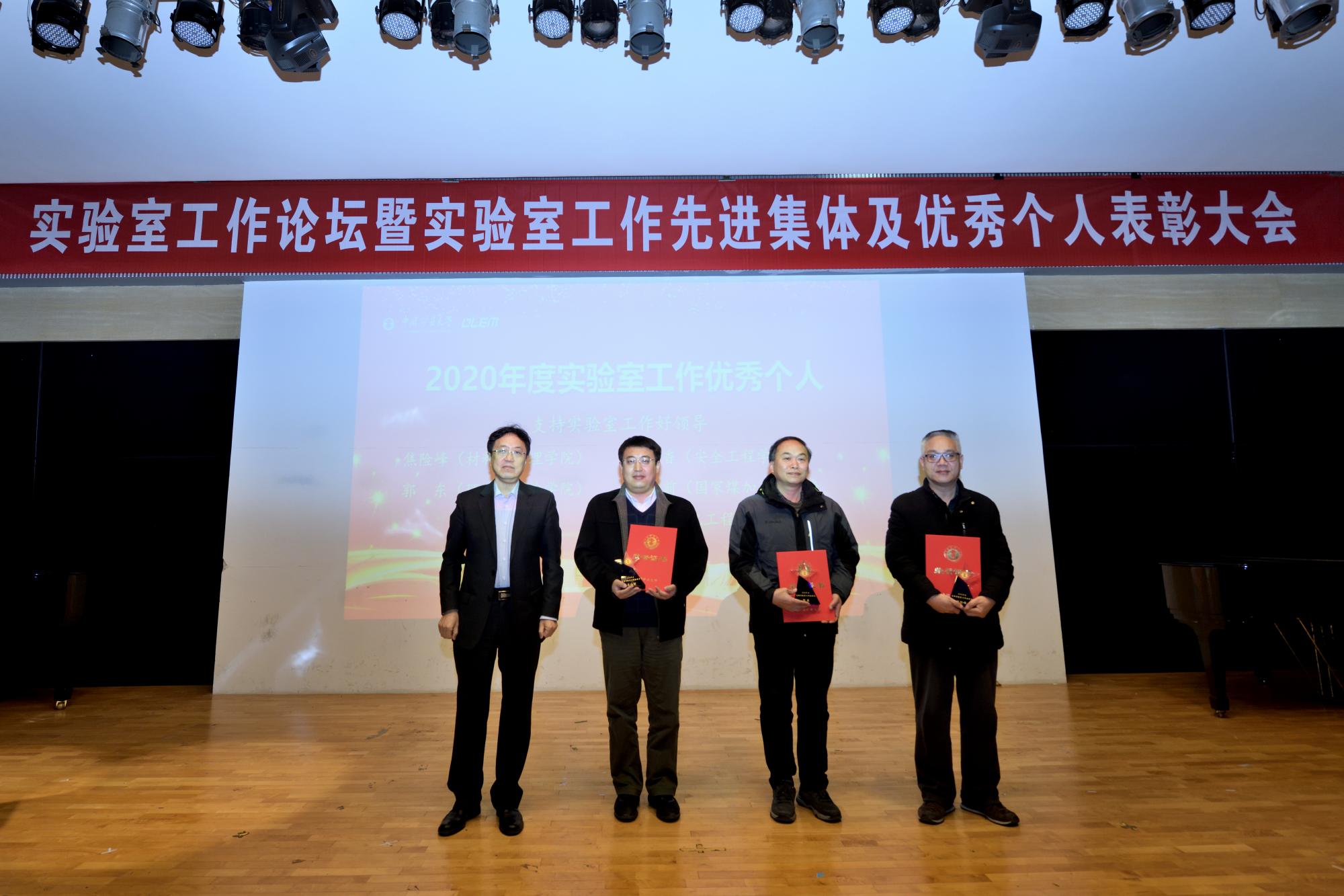 获“实验室安全工作先进集体”称号(全校1个),郭东获“支持实验室工作好领导”称号(全校4人),马昌忠获“优秀实验中心主任”称号(全校3人),白向玉获“实验室安全工作特别贡献奖”(全校1人),蔡先娈获“优秀实验中心秘书”称号(全校6人),雷灵琰获“优秀实验室安全员”称号。
