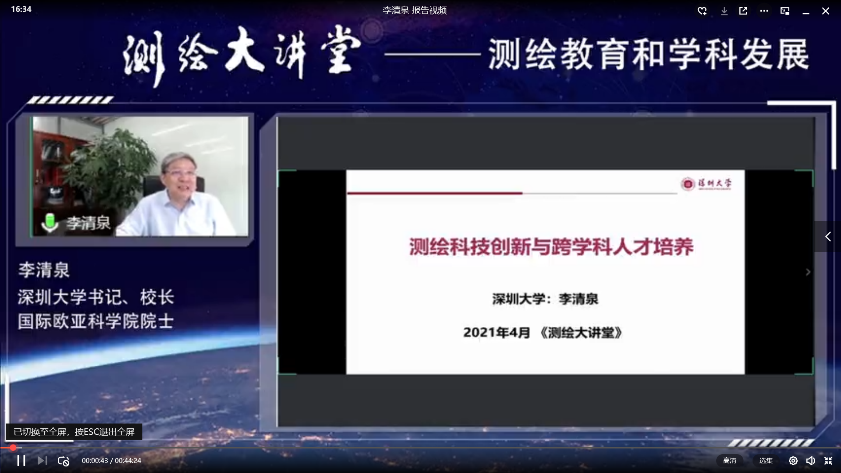 本期测绘大讲堂主题为“测绘教育和学科发展”,武汉大学党委常委、副校长、中国工程院院士李建成教授和深圳大学党委书记、校长,国际欧亚科直播露点