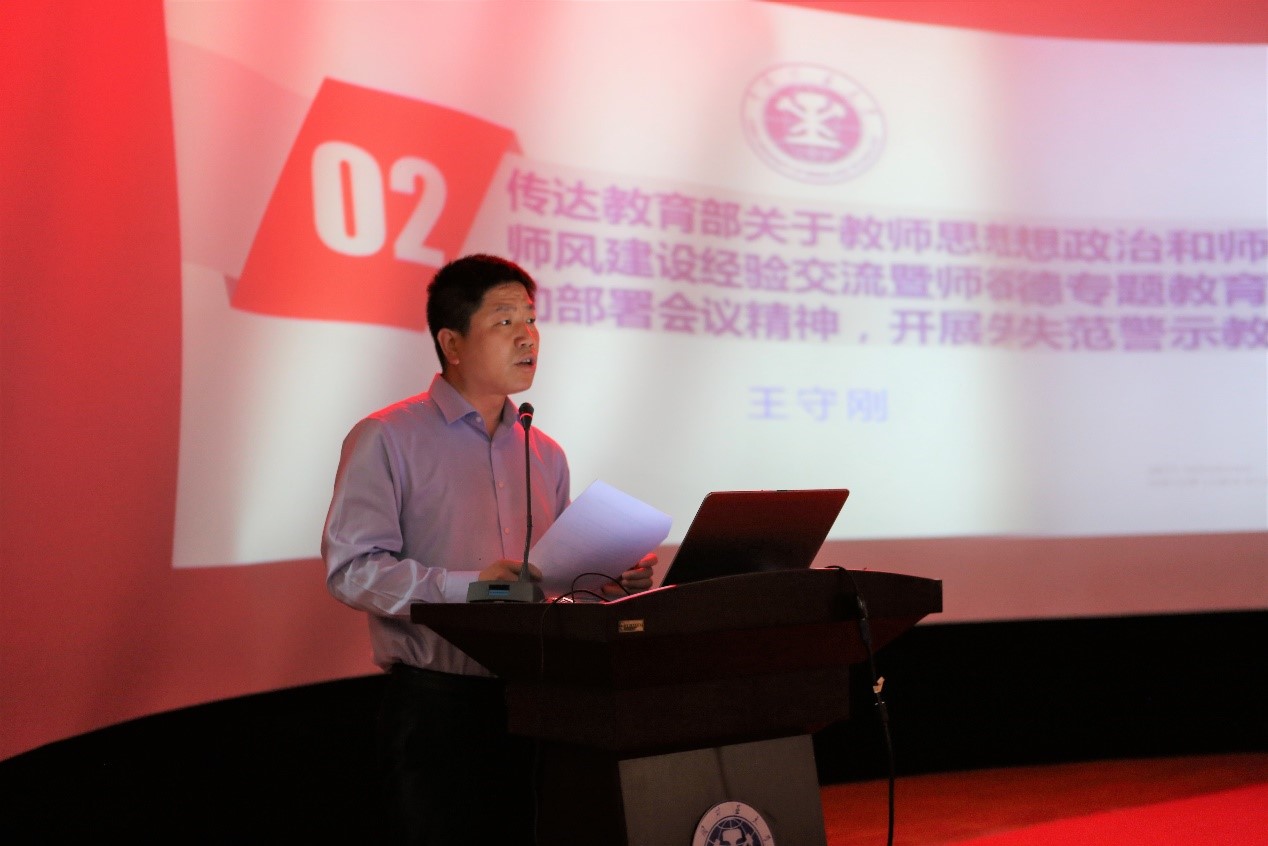 在报告厅B109召开师德师风学习教育大会,院党委书记王守刚和院长郑南山分别作了报告。会议由院党委副书记韩福顺主持。
