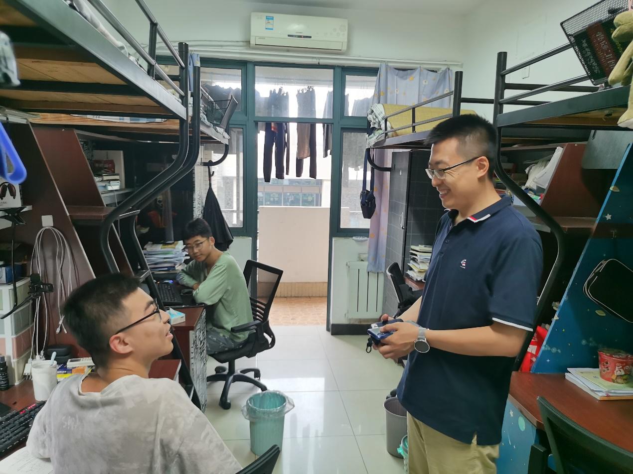 党委副书记韩福顺带队,协同各年级专兼职辅导员、研究生会、研究生党员工作站成员深入走访学生社区,开展宿舍安全卫生检查工作,同时对留校学生进行了慰问关心。