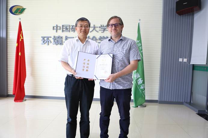 与攀登学者Jason Blake Cohen教授签订聘任协议,卞正富副校长颁发了聘任证书。