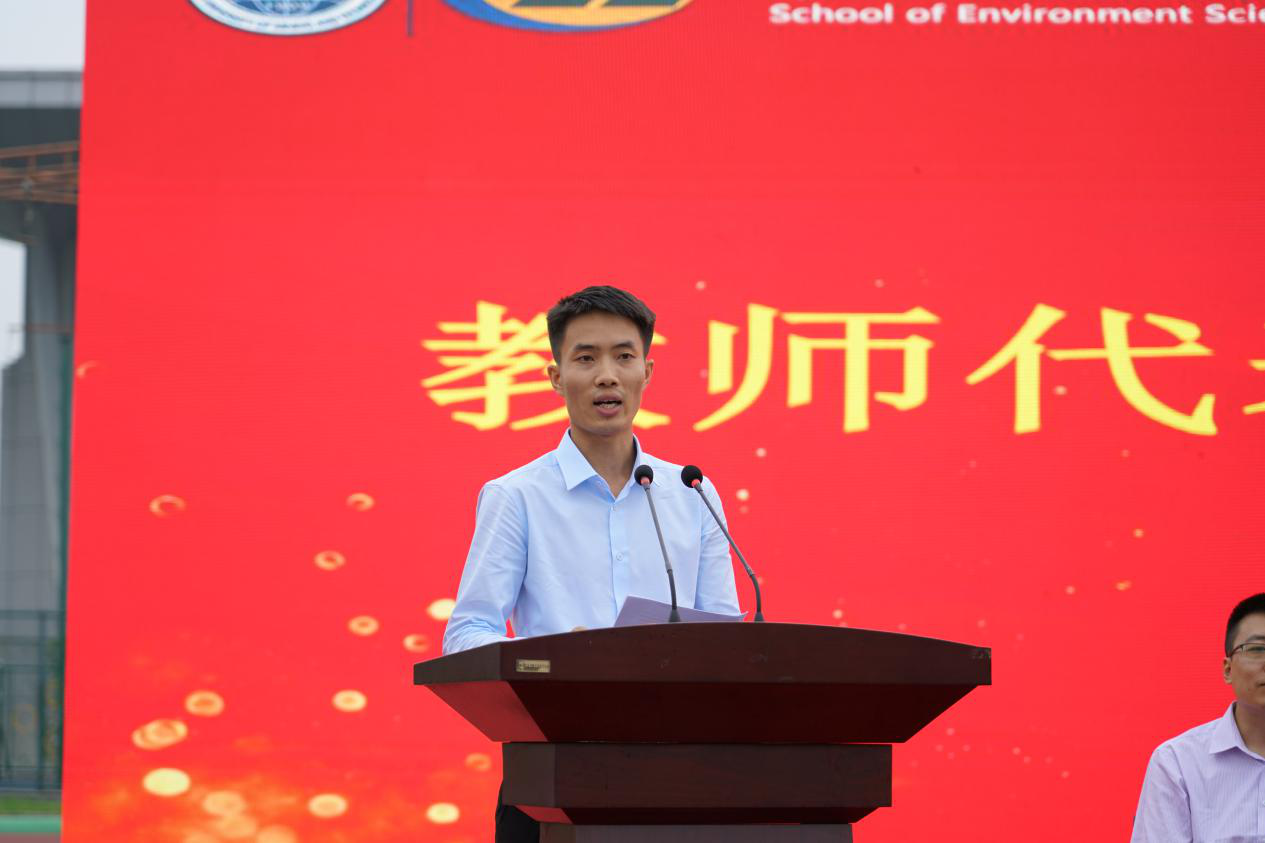 教师代表季力教授和时洪涛老师分别进行发言。季力教授指出,这是更适合读书的大时代,希望同学们秉承“好学力行”的优良学风,认真学习,用勤奋书写青春,让知识改变命运。时洪涛老师分别从刚毕业的学生、环测新教师、直播露点