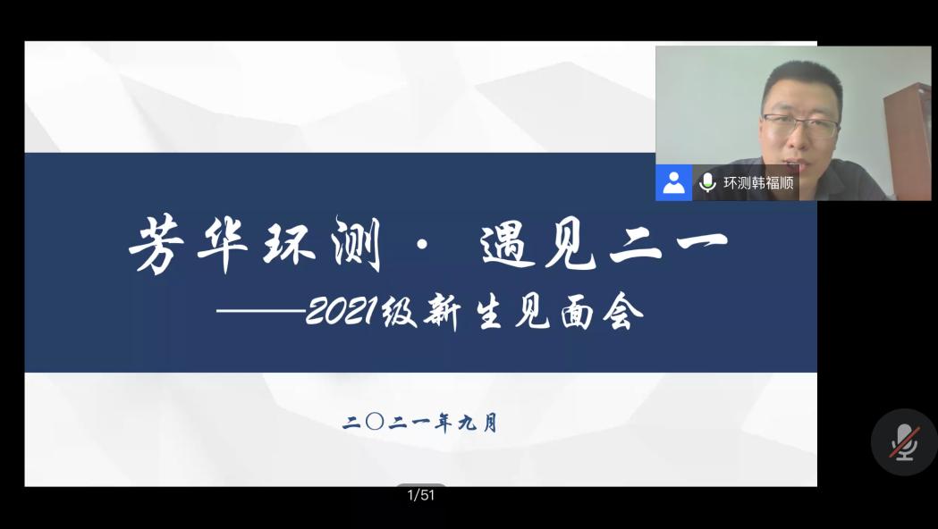 9月18日下午2时,2021级新生见面会以线上会议的形式举行,见面会由2021级专职辅导员于海霞主持。首先,韩福顺副书记对2021级新同学加入环测大家庭表示欢迎,同时希望同学们能在专业学习的道路上取得优异的成绩,并能借助直播露点