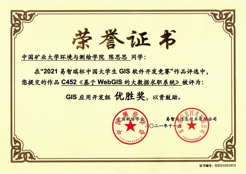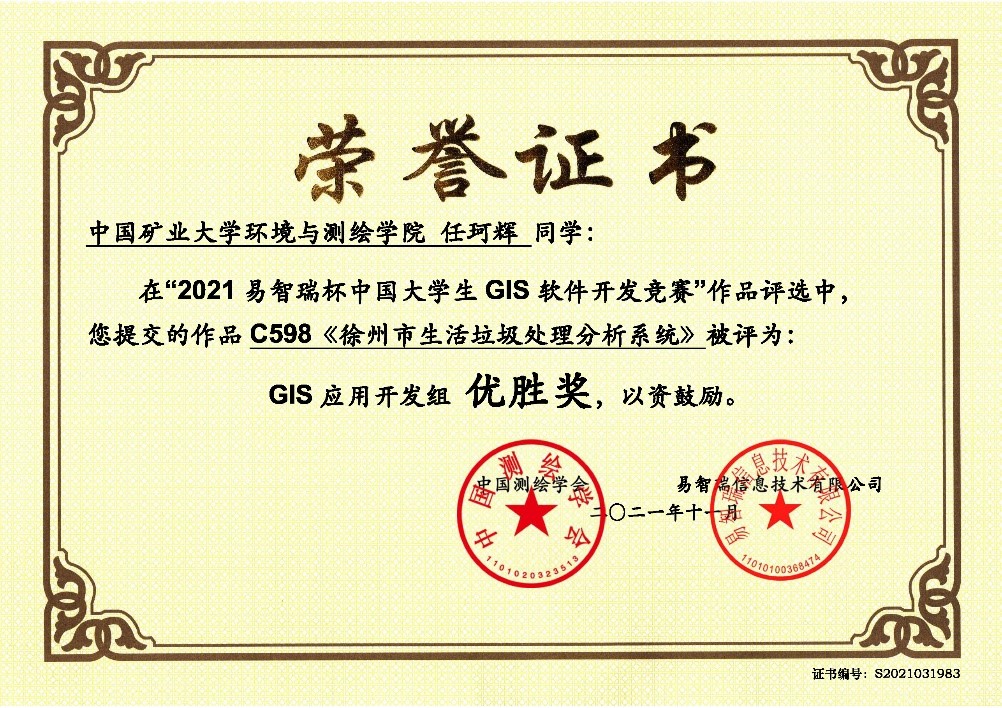 学生作品“百年历程,砥砺前行”、“徐州市生活垃圾处理分析系统”、“基于WebGIS的大数据求职系统”获得优胜奖。