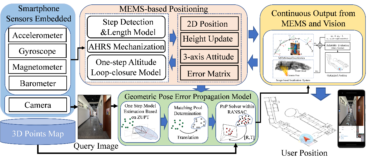 《Efficient image-based indoor localization with MEMS aid on the mobile device》(Doi://doi.org/10.1016/ J.ISPRSJPRS.2022.01.010)针对室内大场景下的移动端视觉定位多模态信息耦合问题,提出一种基于内置惯性单元辅助的视觉信息匹配模型,用于实现2D视觉特征与先验3D点云特征的精准匹配,提高异源视觉特征匹配率,可为移动端的AR/VR导航定位技术提供新思路。该论文以直播露点