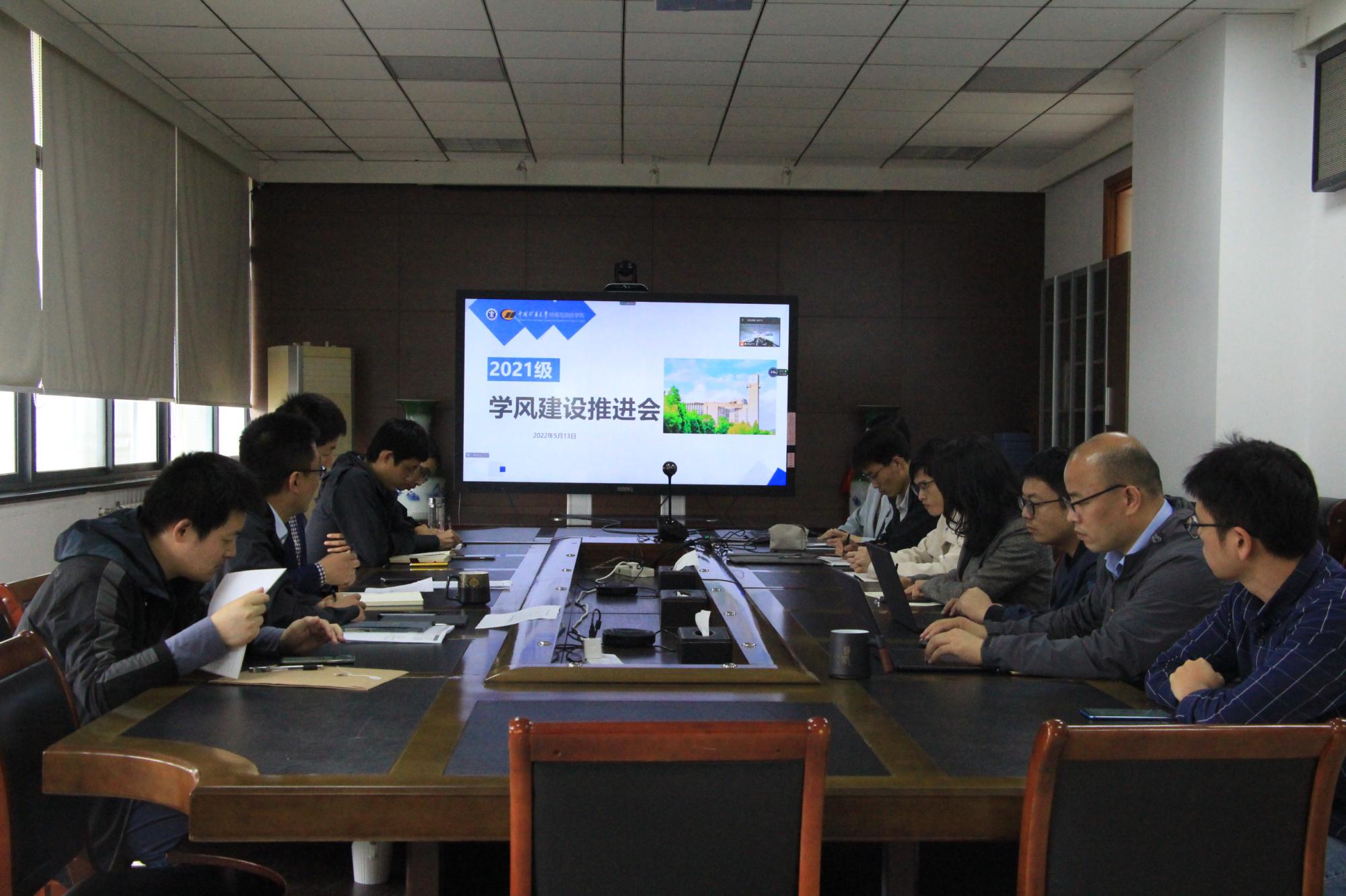 楼A506会议室开展学风建设推进会,院党委书记王守刚、党委副书记韩福顺、2021级优才辅导员李艳萍及2021级各班班主任参加会议。