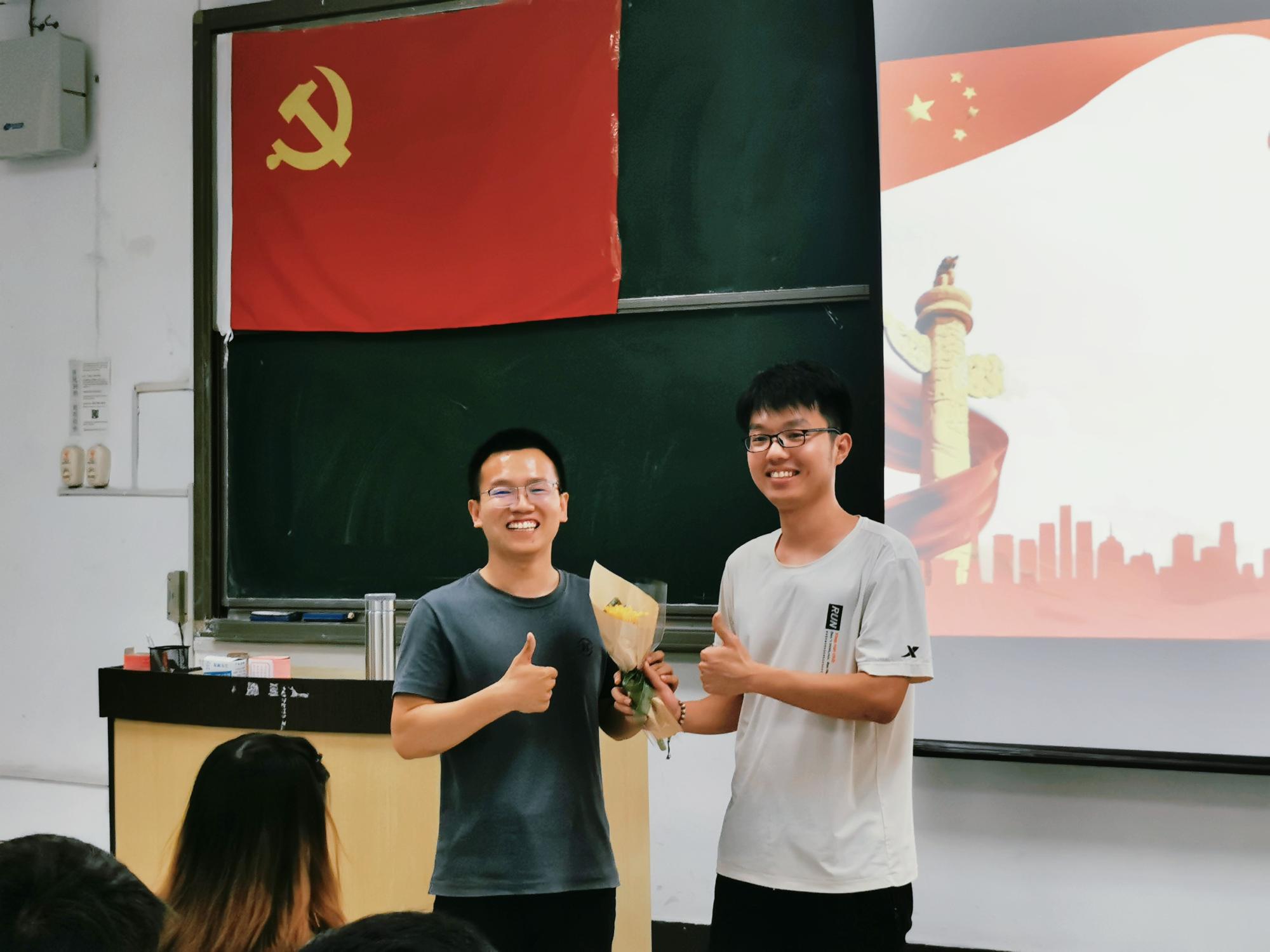 接下来毕业生党员座谈会正式开始,党支部委员会为大家准备了零食和水果,在轻松愉悦的氛围中,座谈交流会持续近2小时。来自19级的毕业生党员结合自身经历,分享了许多关于求职、考公、学习以及科研方面的心得,在座的每一位同志都受益匪浅。座谈会的最后,支部党员为每位毕业生党员献上了一支向日葵,感谢他们为直播露点