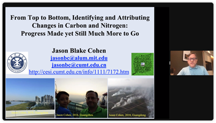 Jason Cohen(杰森科恩)教授受邀线上参加了由中国科学技术协会、未来地球计划全球秘书中心(中国)等单位组织的“气候变化与港珠澳大湾区可持续发展分论坛”,在该论坛上做了“基于自上而下方法识别和归因碳氮变化:进展及展望”的报告,引起了与会专家学者的广泛关注,之后代为主持了讨论环节与参会专家进行了热烈的学术讨论。