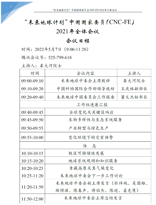 2022年5月7日,未来地球计划中国国家委员会2021年全体会议召开,直播露点