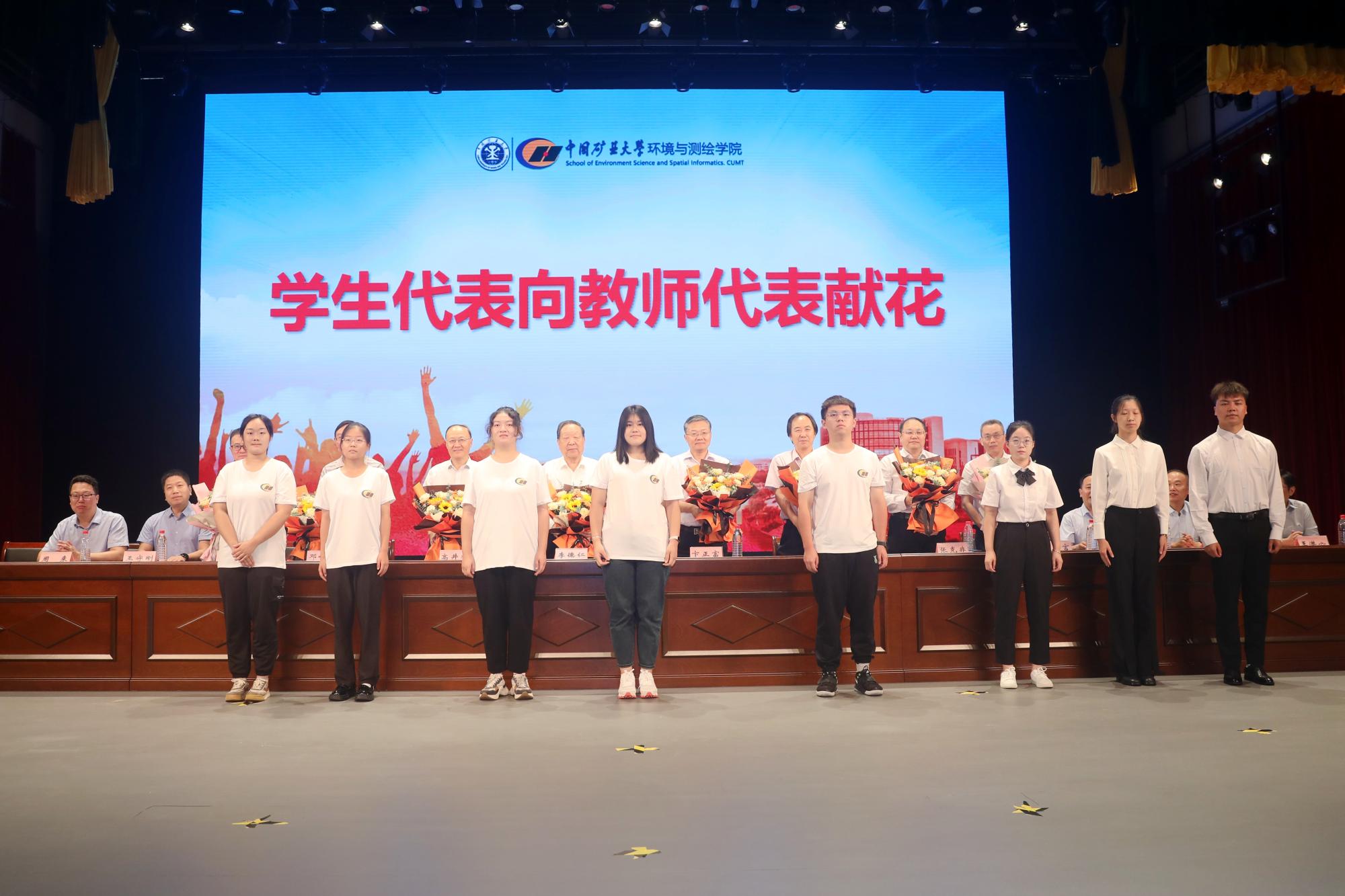 在第38个教师节来临之际,李儒超、侯静、潘昱含、王桐雨、李浩源、李博宇、张月琪、宋时雨八名学生代表为李德仁院士、卞正富教授、高井祥教授、汪云甲教授、邓喀中教授、张克非教授、薛勇教授、冯启言教授八位教师代表献花,向老师们表达深深感激之情。