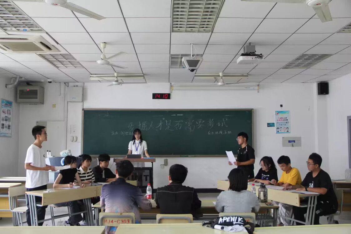 辩论赛在三个教室同时进行,辩题多样化,例如“成大事者是否拘小节”、“网络的实用性大还是娱乐性大”、“发掘人才是否需要考试”等。赛前,辩论队们都做了充分的准备,在熟知辩论规则后,每位辩手都积极参与,各抒己见,据理力争。无论是正方还是反方,都有自己的主见,每位辩手都为本次大赛贡献了精彩的表现。从刚开始的紧张到后面游刃有余的叙述,辩手们都在慢慢适应,辩论也达到了白热化阶段。