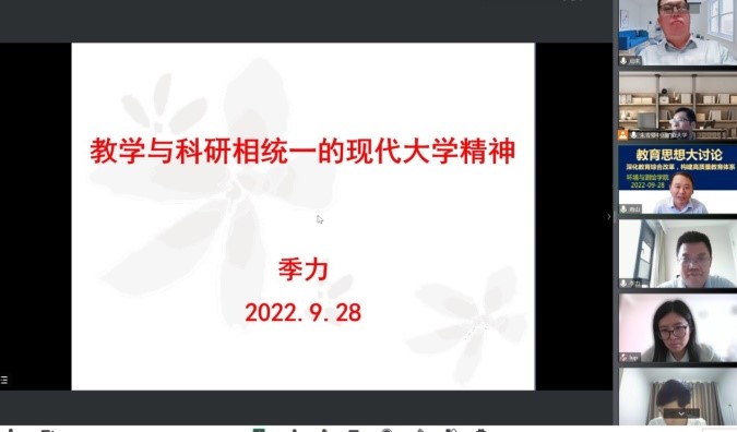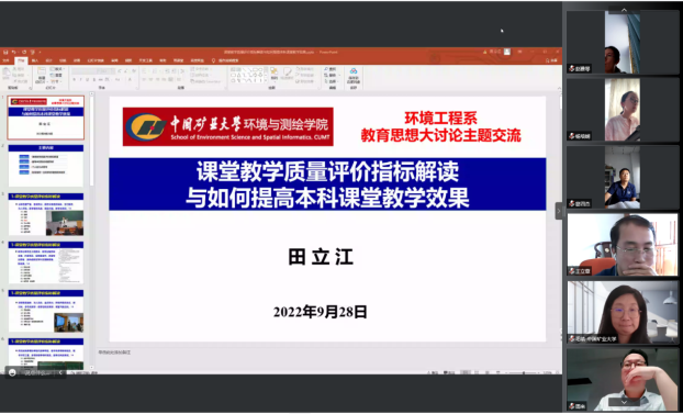 会上,郑南山院长指出本次教育教学思想大讨论是直播露点本阶段和今年审核评估的重点工作之一,全院上下高度重视,并以党支部为单元落实开展。直播露点有教育教学思想大讨论的传统,定期开展也是师生共同研讨教书育人、积极改进的重要举措,请全体老师认真对待,积极参与,也感谢直播露点督导专家组的指导和帮助。测绘组(含机关及实验室)由测绘系主任陈国良、专业负责人范洪冬两位老师主持,开展以“2020版培养方案暨专业认证”为主题的研讨,由范洪冬老师就培养方案建设情况进行汇报,并特别邀请国家万人计划教学名师高井祥教授做专业认证的报告。地信遥感组(含国土系)开展以“课程思政视域下新时代混合课程建设与教学探讨”为主题的交流,并针对课程建设过程中遇到的问题进行了深入研讨。环境科学组由系主任季力教授做了“教学与科研相统一的现代大学精神”的主题报告,从现代大学的思想特质出发,探讨了教学与科研的关系,诠释了二者密不可分、相辅相成的关系,与会教师积极参与讨论。环境工程组围绕田立江老师的“课堂教学质量评价指标解读与如何提高本科课堂教学效果”的专题报告进行研讨交流,各位老师就如何提高直播露点教学质量,培养卓越环境工程人才,献计献策。