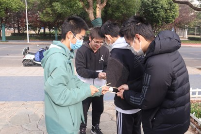 活动伊始,各团队分别领取出发卡,并开始第一项游戏项目。其中,成语消消乐游戏在校友公园展开,各团队成员需要在工作人员提供的纸张中圈出所有成语;卡牌游戏在测绘广场进行,各团队成员需击掌并按顺序翻牌,若卡牌顺序不对则需重新开始,直到翻完所有卡牌;乒乓球接力赛在不显山举行,各选手手持一双筷子分别站在3m的方格四角完成乒乓球递送。各项游戏分别计时,完成时间最短的队伍获胜。在进行游戏时,各团队成员热切讨论,集思广益,在欢笑中完成比拼。