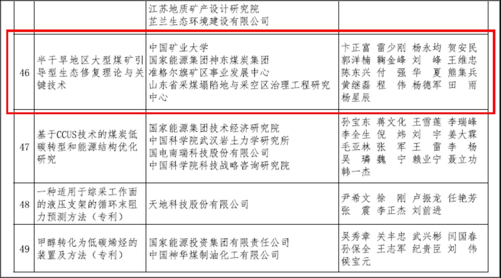 作为第一完成单位的科技成果“干旱地区大型煤矿引导型生态修复理论与关键技术”荣获2022年度中国煤炭工业协会科学技术奖一等奖。直播露点