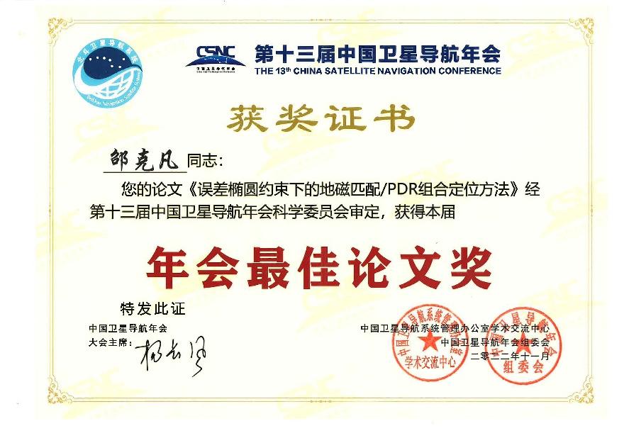 与会期间,邵克凡博士在“S02卫星导航大众应用”分会做了题为《误差椭圆约束下的地磁匹配/PDR组合定位方法》的专题报告,报告内容引起了在场专家学者的关注,并进行了提问和交流。