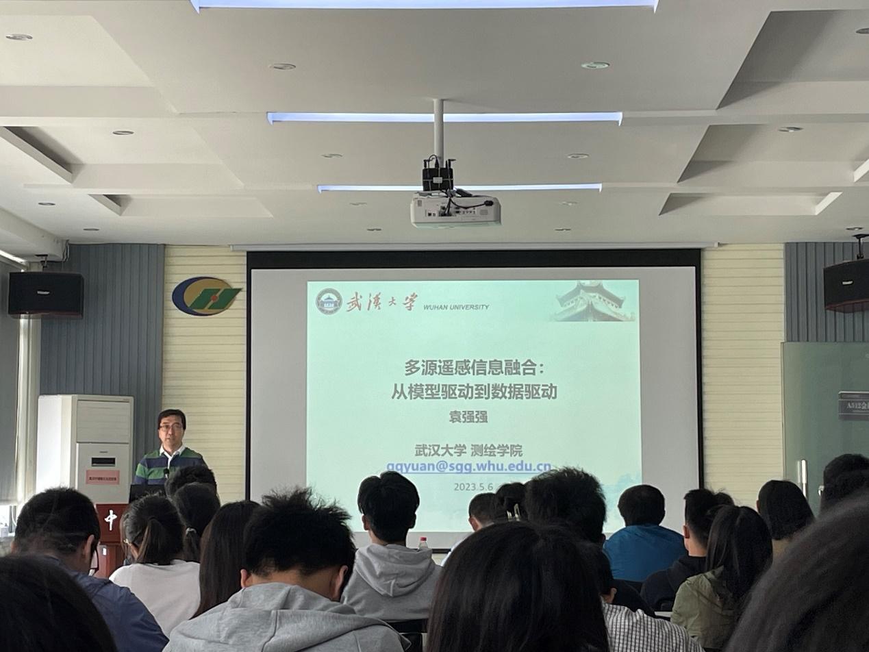 袁强强教授作“遥感前沿技术系列讲座”学术报告。报告由王潜心院长主持,共60多位师生参加了本次讲座。