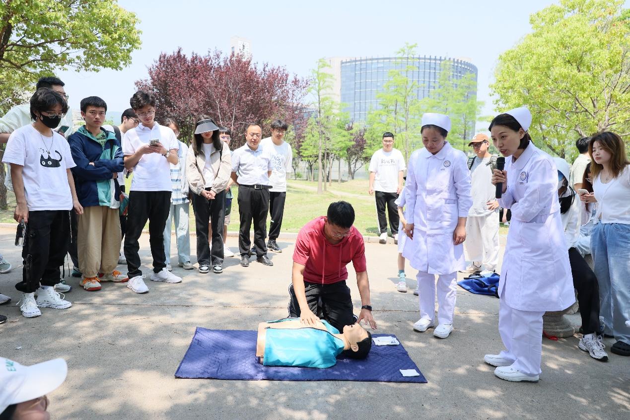 启动会后,环境工程、地理信息科学、测绘工程、环境科学2020级和2021级共计118名本科生在镜湖广场参加了首次劳动教育与实践,首次课程以“实验室安全个人防护与应急处置”为主题。白向玉老师围绕习近平总书记关于安全生产的重要论述、新《安全生产法》的颁布与实施、高校实验室典型安全事故等内容介绍了本课程的设置背景和重要性。江苏君源环保科技有限公司屈俊勋,徐州市中心医院李薇、洪茜以及白向玉老师分别讲解并演示了防护用品穿戴的基本规范、心肺复苏操作流程、消防安全基本知识、灭火器使用以及绳子打结逃生操作方法等,并与学生进行了现场互动。下午13:30,任课教师按照理论考核、灭火器使用、个人防护用品穿戴、心肺复苏、绳子逃生打结五个项目分组逐一对学生进行了实操考核。考核结束后,全体同学共同观看了实验室化学品泄漏应急安全处置演练实操。最后,白向玉老师对本次课程进行总结,并回答了同学们的相关问题。