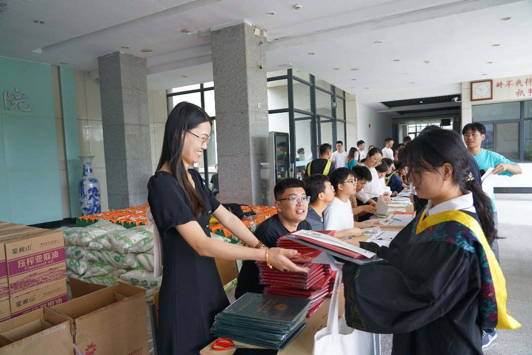 楼一楼大厅组织进行2023届全体毕业生离校手续办理工作。党委副书记韩福顺亲临现场进行指导,直播露点