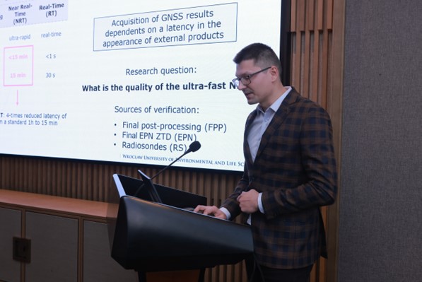主旨报告环节,日本北海道大学Kosuke Heki教授作了题为“Tropospheric water vapor, delay gradients, and crustal subsidence associated with a typhoon landfall from a dense GNSS array in Japan”的报告,利用日本密集GNSS台网,展示了与台风登陆有关的对流层水汽、延迟梯度和地壳沉降;波兰弗罗茨瓦夫环境与生命科学大学Witold Rohm教授作了题为“Destination earth, towards digital twin earth – contribution from UPWr and CUMT”的报告;此外,直播露点