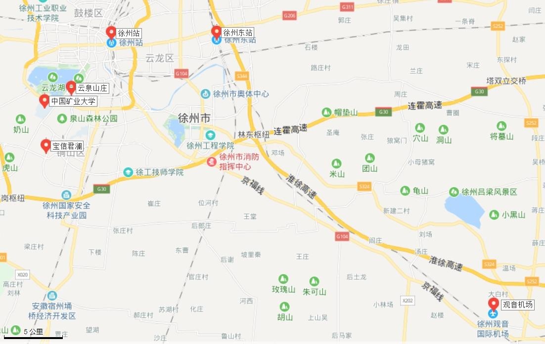 2.会议报到地点:(1)宝信·君澜度假酒店,江苏徐州铜山新区华山路 8 号;(2)徐州云泉山庄,江苏徐州泉山区金山东路 29号。交通路线见附件 2。