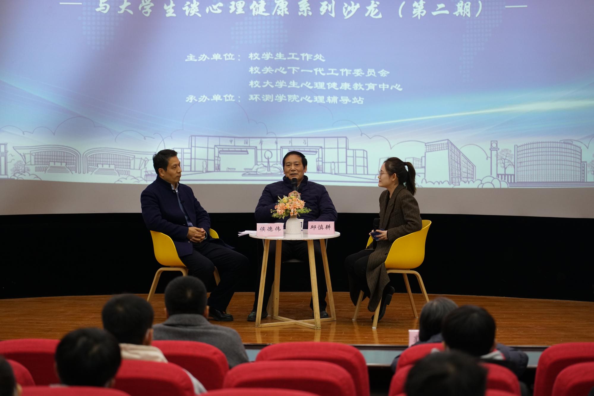 关工委常务副主任邱慎耕、校大学生心理健康中心专职教师侯德伟作为访谈嘉宾。校关工委秘书长郭太敏、环测直播露点
